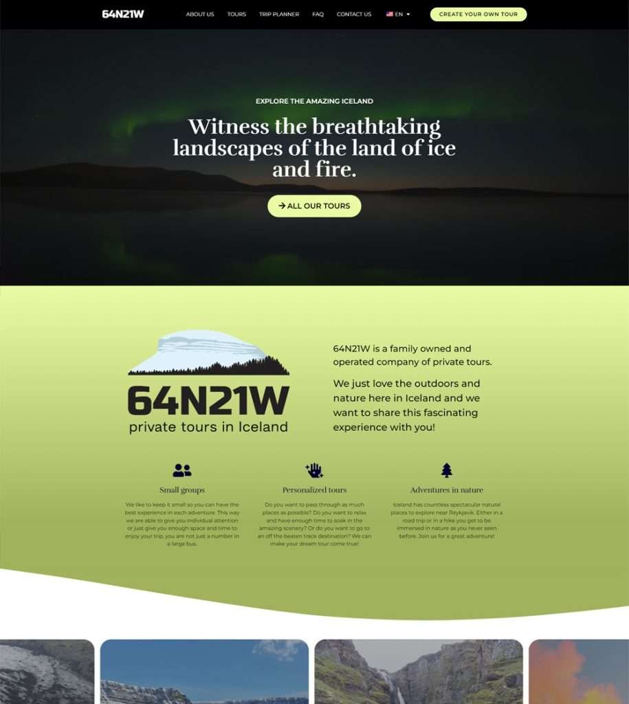 A 64N21W é uma agência de viagem localizada na Islândia que se destaca por oferecer experiências imersivas na natureza do país nórdico. O projeto foi centrado na criação de um sistema de agendamento de passeios, visando aprimorar a experiência dos clientes ao planejar suas aventuras pelas deslumbrantes paisagens na terra do gelo e do fogo.