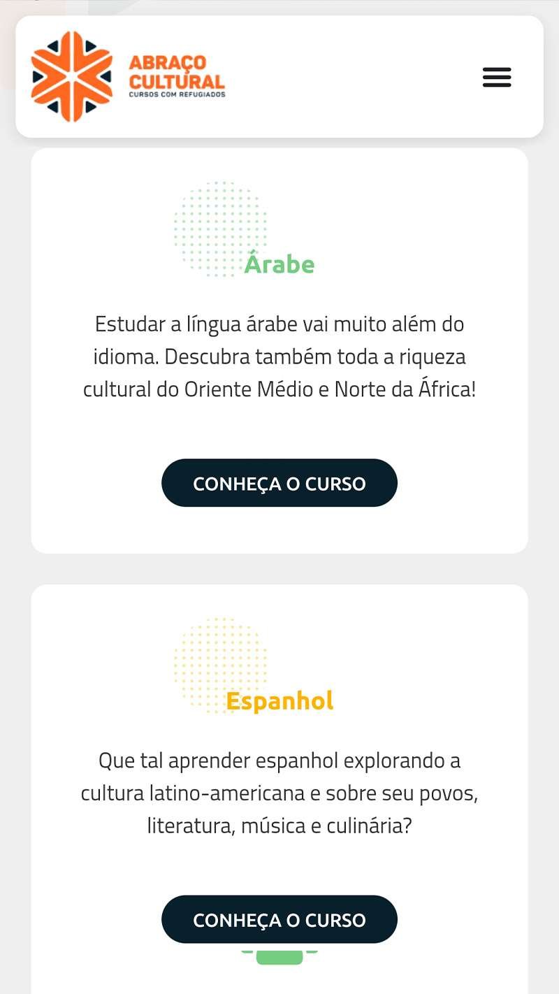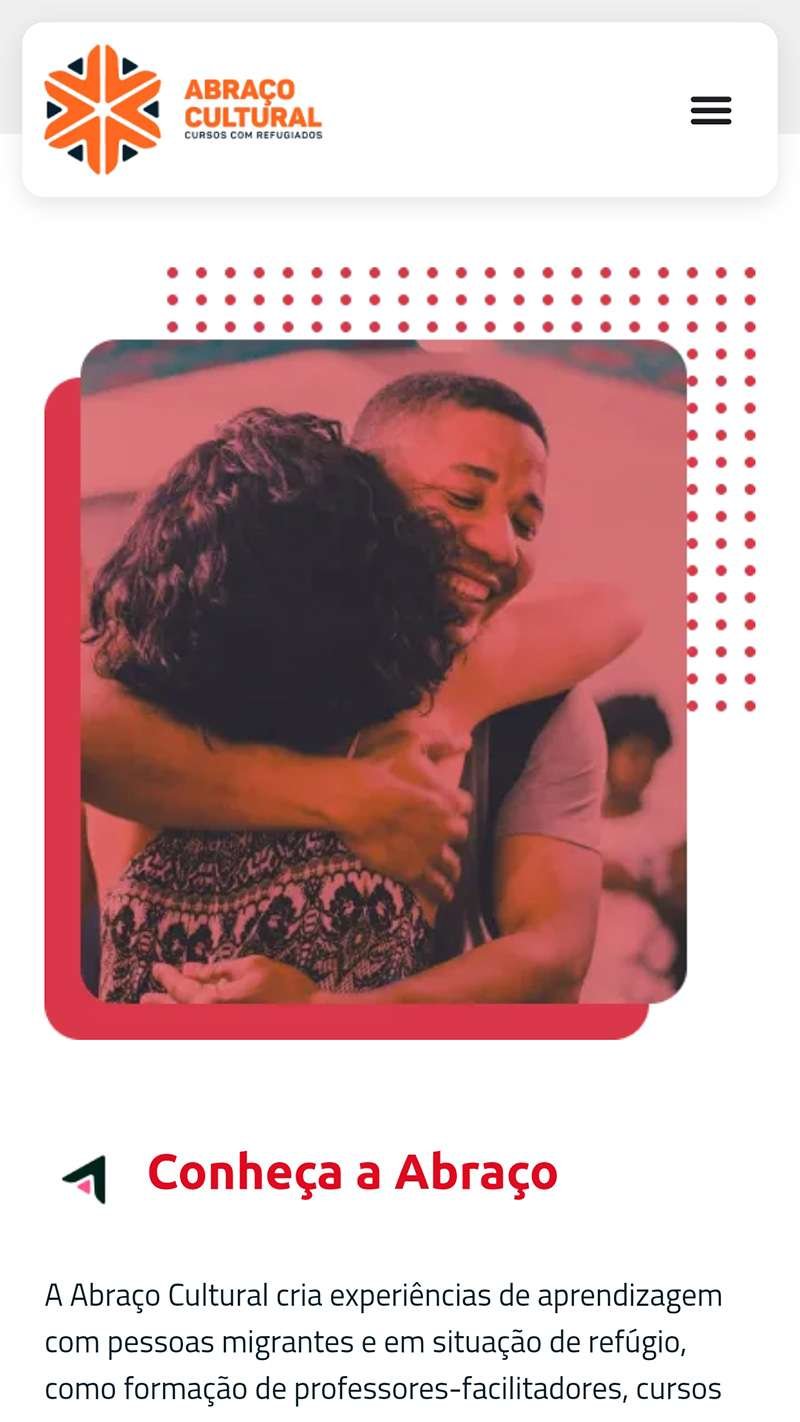 Desenvolvemos um site completo para a escola de idiomas do projeto Abraço Cultural, que conecta professores de idiomas refugiados, em São Paulo e no Rio de Janeiro, com alunos interessados, integrando um sistema de gestão de conteúdo e organização de cursos e turmas para facilitar o acesso dos alunos à informação e do público aos diversos cursos oferecidos pela organização.